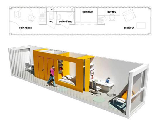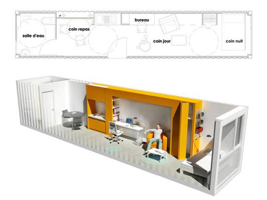 En mi opinión este proyecto de momento no pasa de una mera propuesta para un concurso, y la ejecución real de este tipo de construcciones sigue quedando para el futuro, que por otra parte cada vez está más cercano. Y como se puede observar en las imágenes, las soluciones de los interiores de estas miniviviendas-contenedores, son totalmente compactas, y me recuerdan a la «famosa» propuesta política de apartamentos de 35 m2, o a los interiores de la autocaravana Optima Motorhome de los que hablé en este blog recientemente.
