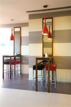 En la zona de acceso se sitúan tres mesas altas «ligeras», para consumiciones rápidas de esta zona de cafetería. En la segunda zona -comedor de menú y carta- se pueden atender hasta 34 comensales, con mesas que se puede juntar en función del número de personas del grupo, rentabilizando al máximo el espacio del comedor.